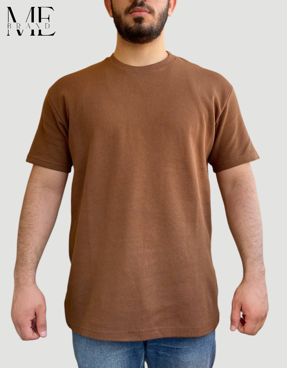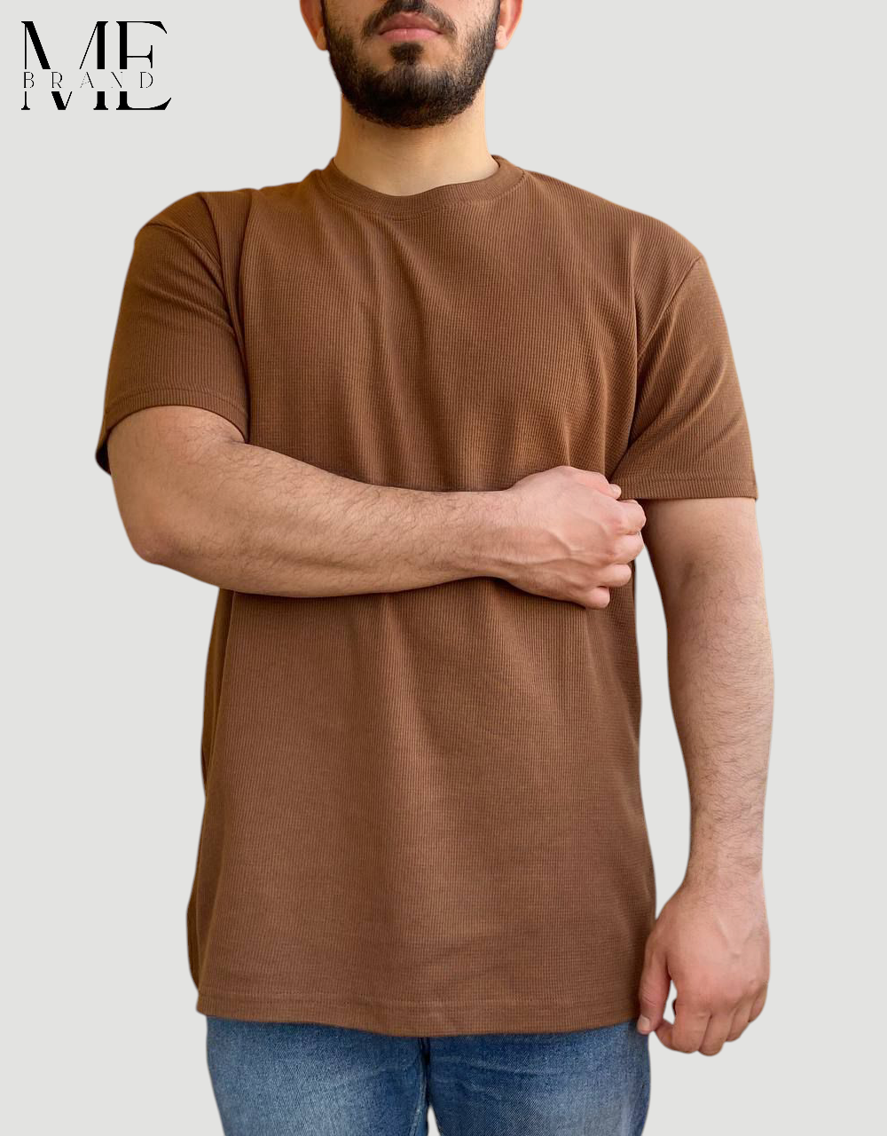 تي شيرت بني رجالي أوفر سايز بتصميم أنيق وخامة ممتازة من القطن، مصمم ليتحمل حرارة النهار وبرودة الليل.